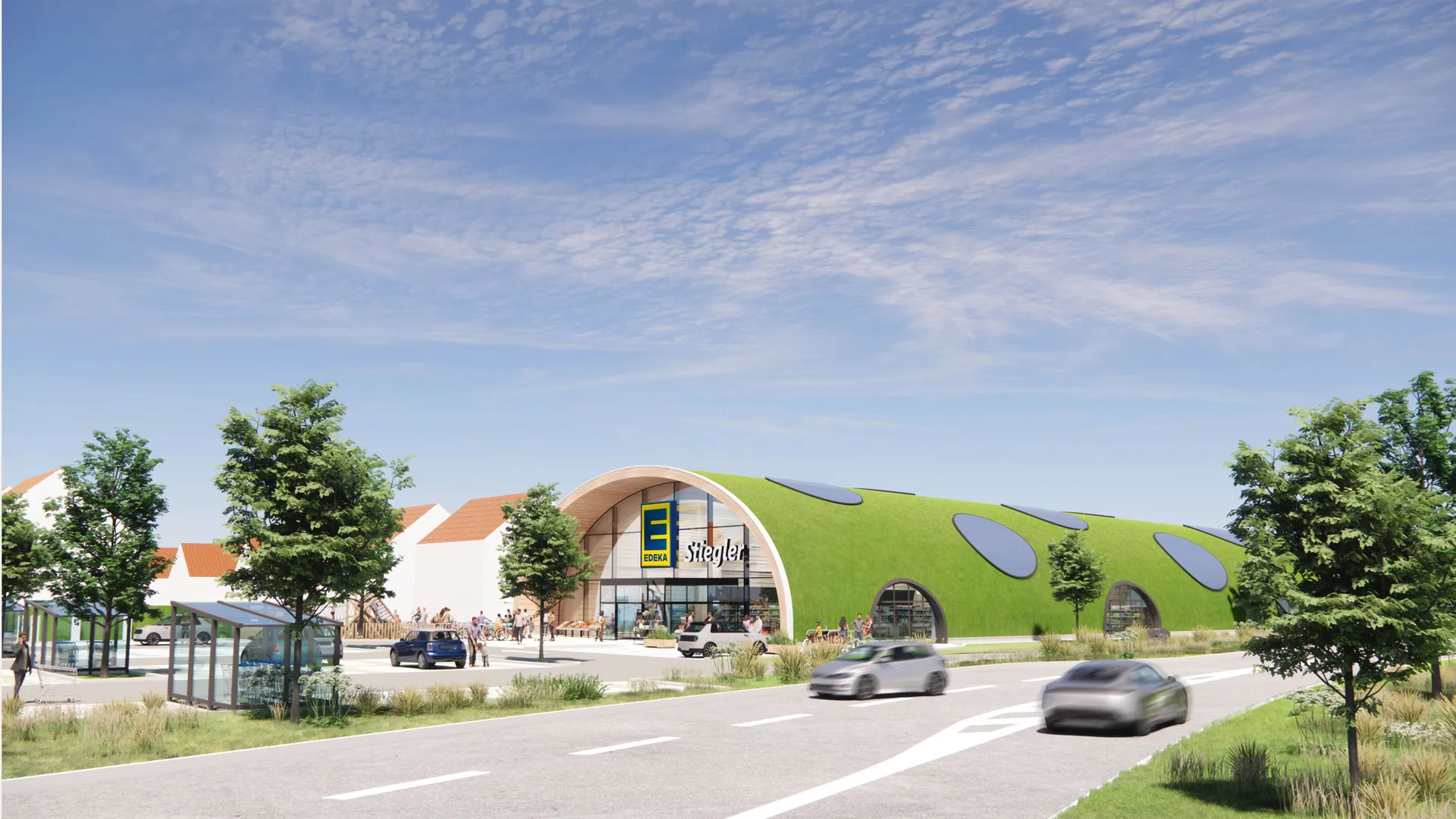 Gemeinsam mit EDEKA Südwest und dem lokalen Betreiber EDEKA Stiegler entsteht hier bis 2027 ein Projekt, das zeigt, wie verantwortungsvolle Architektur regionale Identität stärken und gleichzeitig einen Beitrag zu klimafreundlicher Stadtentwicklung leisten kann.